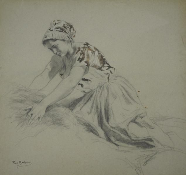 Étude, femme ramassant une gerbe de blé.