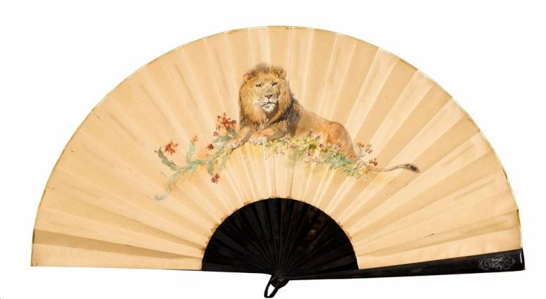 | Pencil and gouache on a fan, with a hansbill turtle eretmochelys imbricata handle, in a lunette shaped frame | |