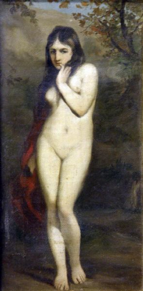 nude study of a young girl standing in a landscape setting