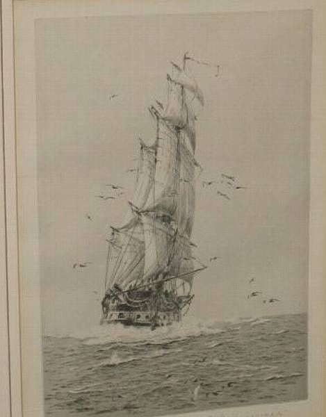 A sailing warship close hauled at sea