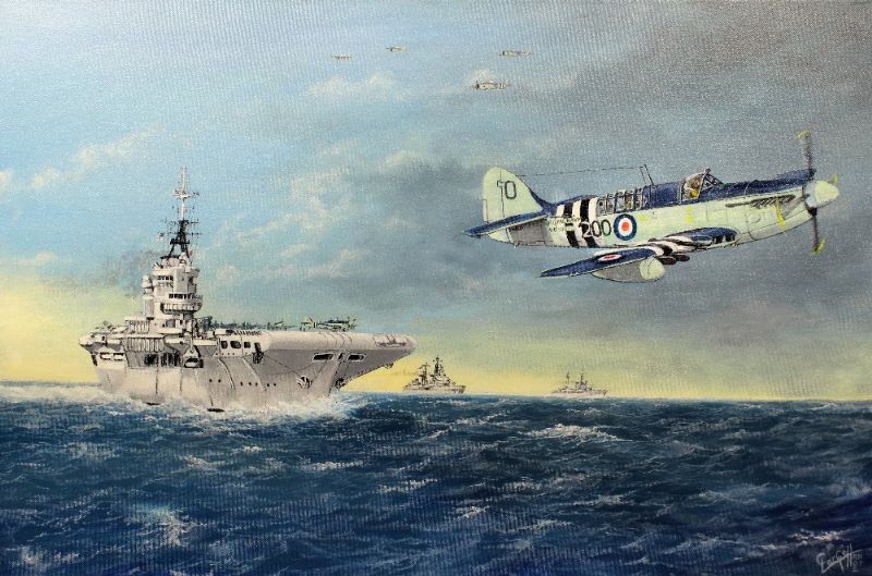 | 'Ocean Firefly' - Portrait of the aircraft Fairy Firefly leaving HMS Ocean, during the Korean war | |