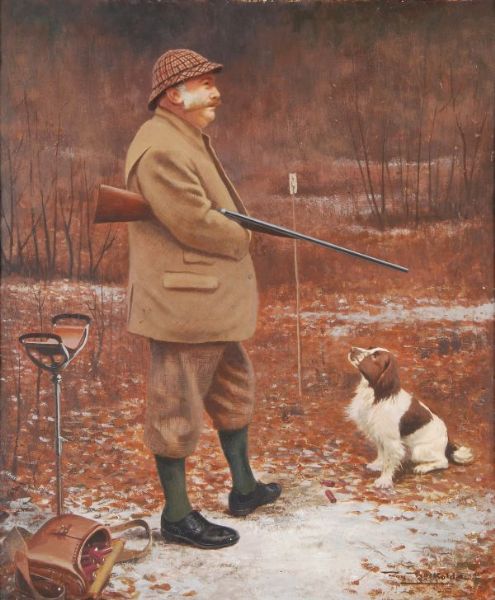 A gentleman and his spaniel on a shoot