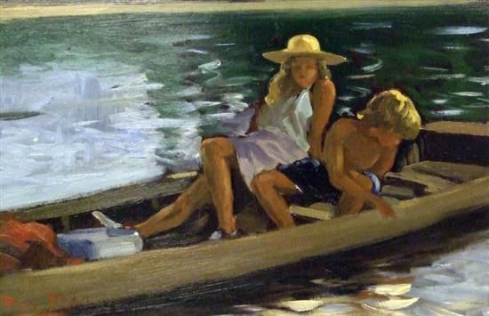 Boy and a girl in a punt