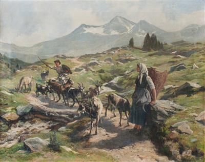 Auf dem Almweg - Ziegenhirte und Sennerin