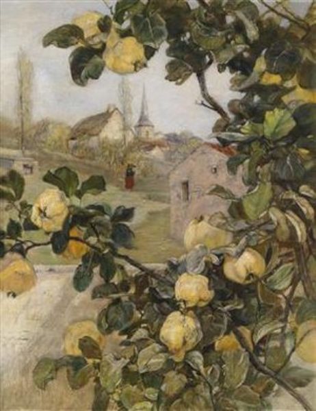 | Branch of a Quince Tree with View of a Small Village in Luxembourg, on the reverse inscribed with the title "A view of Steinzel | |