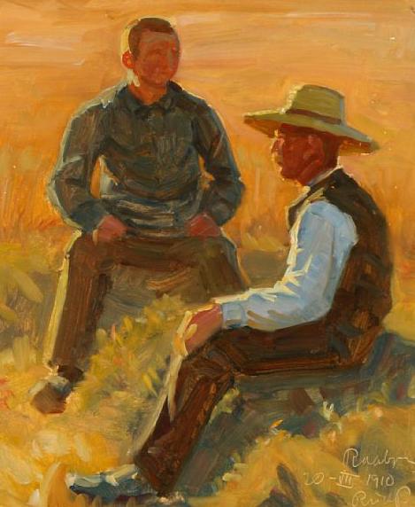 | Two men sitting in the grass near Raabjerg | |