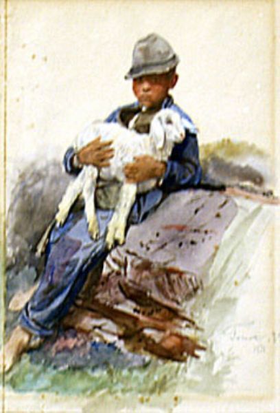 Studie eines südtiroler Knabens mit Lamm in den Armen
