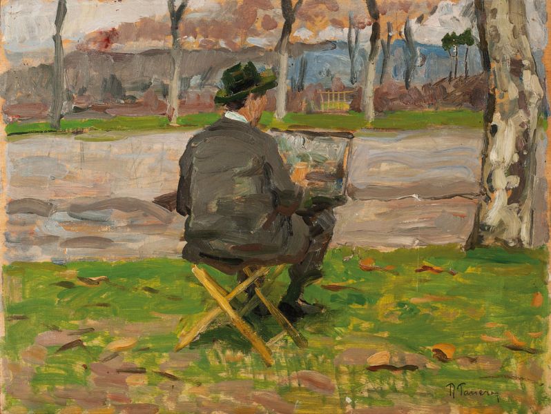 Pittore al lavoro lungo il viale