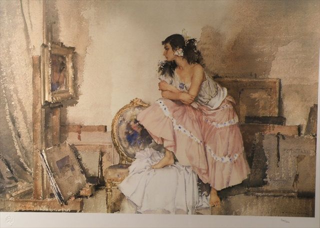 The Blue Ribbon, Naomi reclining on a sofa in blue dress
