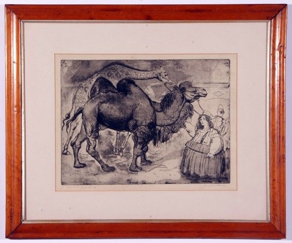 Clown Leading Camel and Giraffe