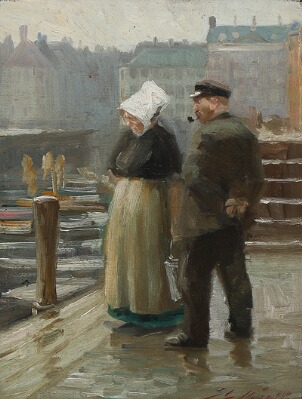 Fisherman and fishwife on Gammel Strand, Copenhagen.