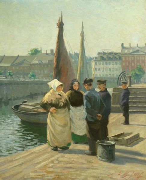 | Fishermen and their wives in conversation at Gl. Strand in Copenhagen | |