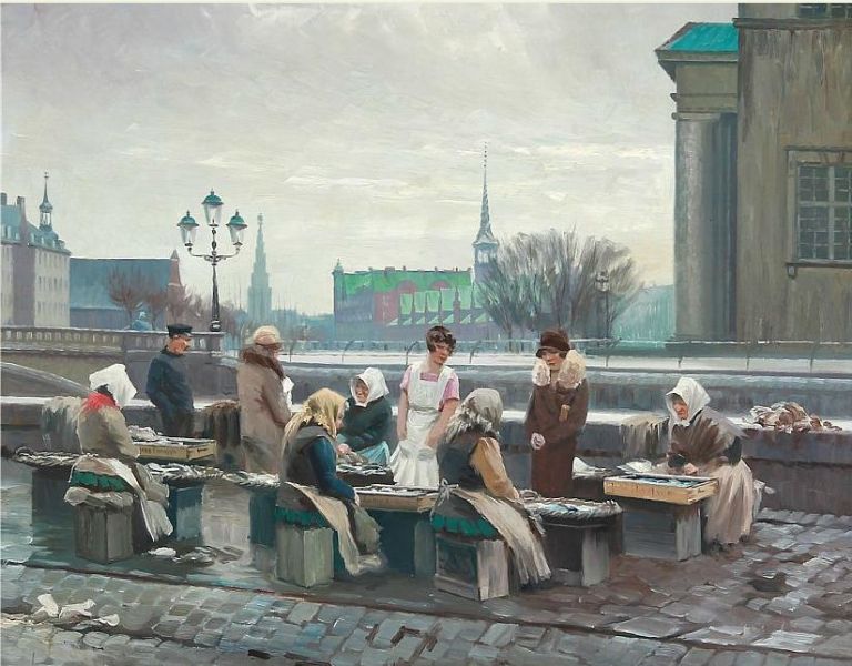 Fishermens' wife selling fish at Gl. Strand in Copenhagen