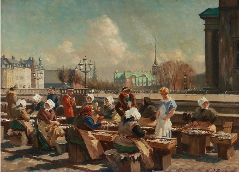 Fishermen's wife selling fish at Gl. Strand in Copenhagen.