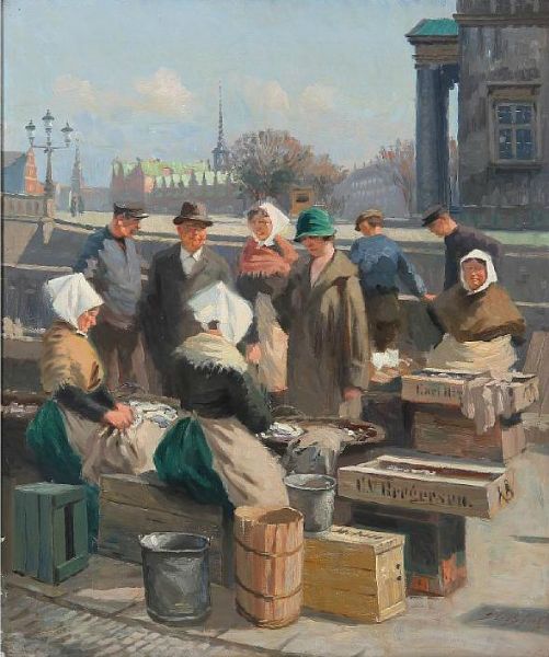 Fishermens' wife selling fish at Gl. Strand in Copenhagen.