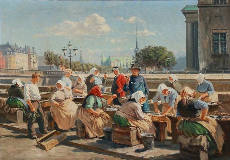 | Fishermens' wifes selling fish on a summer day at Gl. Strand in Copenhagen | |