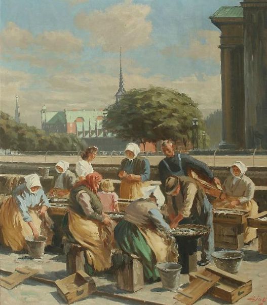| Fishermen's wives at the fish market at Gl. Strand in Copenhagen. | |