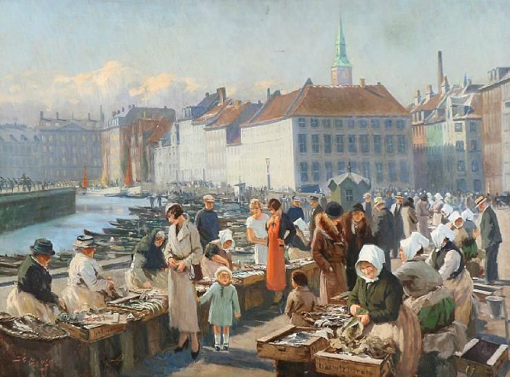 Fishermens' wives selling fish at Gl. Strand, Denmark