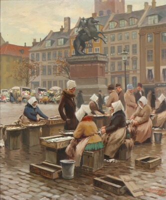 | Fishermen's wives selling fish at Højbro Plads, Copenhagen. | |
