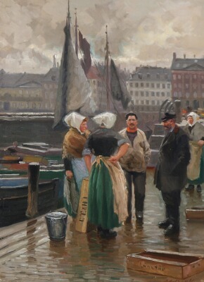 Fishwives and fishermen chatting on Gammel Strand, Copenhagen