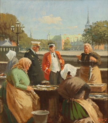 | Fishwives and shoppers on the market on Gl. Strand in Copenhagen | |