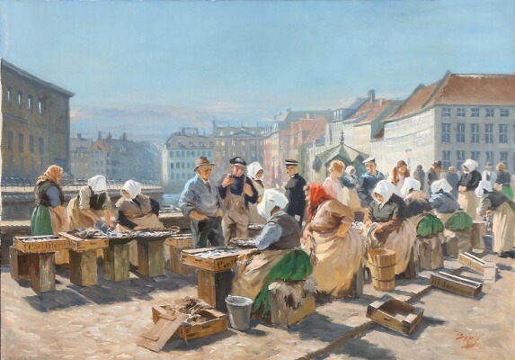 | Fishwives selling fish on Gammel Strand, Copenhagen | |