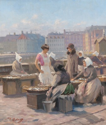 | View from the market at Gl. Strand, Copenhagen with women selling fish | |