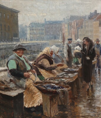 | View fromCopenhagen with women selling fish at Gl. Strand. | |