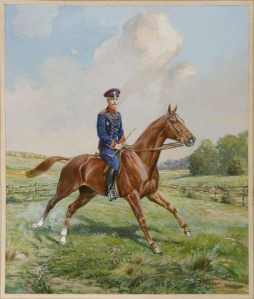 Portrait équestre du colonel Sylvestre Gourieff en tenue des Lanciers de l'Impératrice
