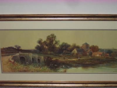| River Scene with River and Figures in the Foreground, Village in the Distance | |