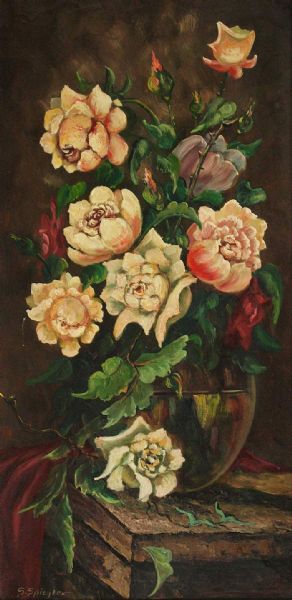 Prächtiges Stilleben mit Rosenstrauss in Kugelvase