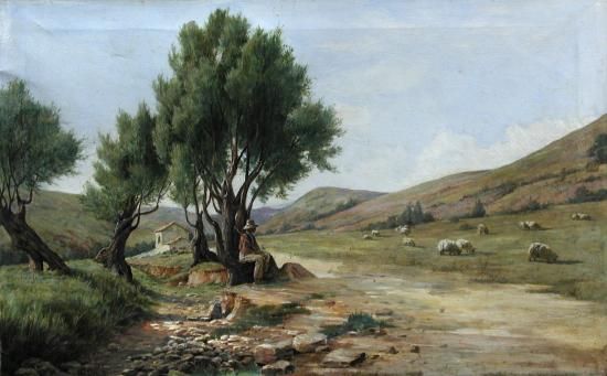 An Italian shepherd watching his flock
