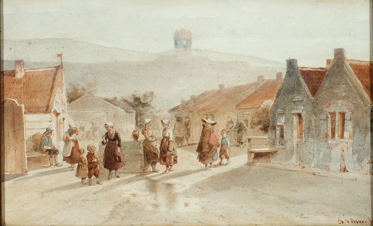 Figures in a village street