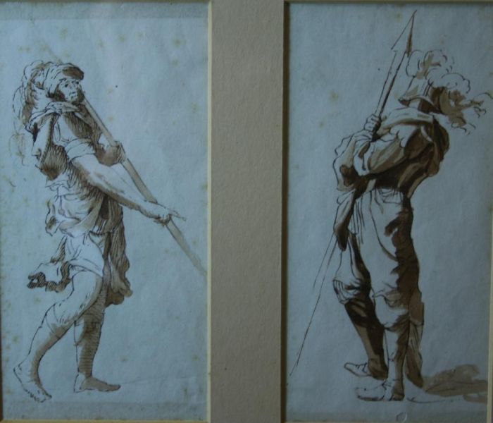 | STUDY OF A STANDING MAN, WITH A POLE; STUDY OF A SOLDIER WITH A PLUMED HELMET AND A HALBERD | |