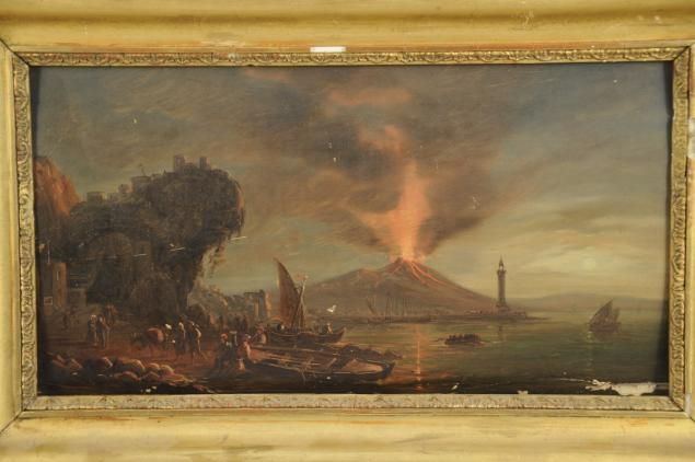 La baie de Naples, la nuit avec l'éruption du Vésuve