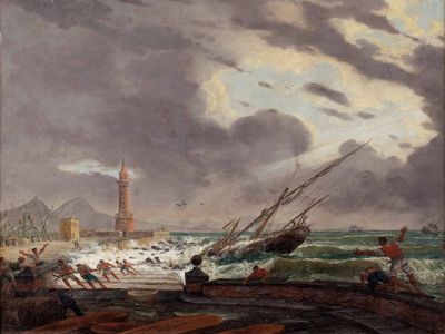Gestrandetes Segelschiff im Hafen von Neapel
