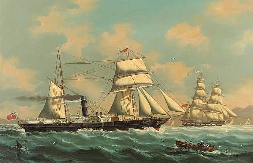 The Sail and Steam Ship 'Alcester' with other vessels off a coastline