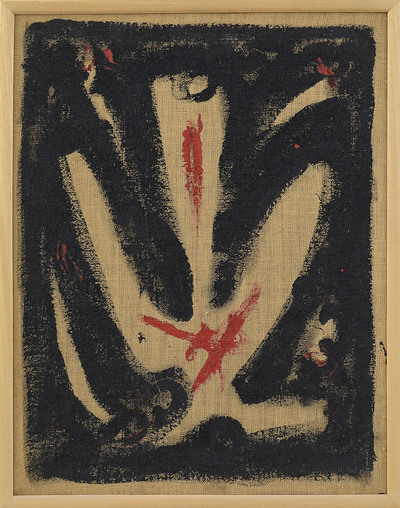 terre colorate del Vesuvio su tela di juta 80x60 cm, firma e anno al retro, opera registrata presso l'Archivio Fotografico delle Opere del Museo Emblema al n° 370 come da dichiarazione su 2 foto. | |