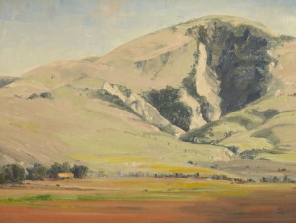 California landscape with mountain; Landscape with log cabin (double-sided)