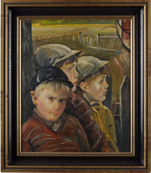 Tre pojkar varav en vänd mot betraktaren.