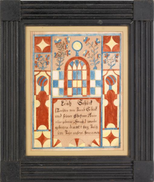 fraktur birth certificate for Leah Schirk
