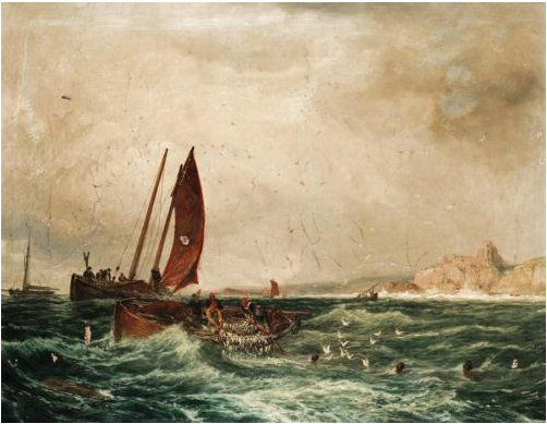 | OFF SHORE FROM TANTALLON CASTLE, FISHING BOAT LIFTING NETS | |