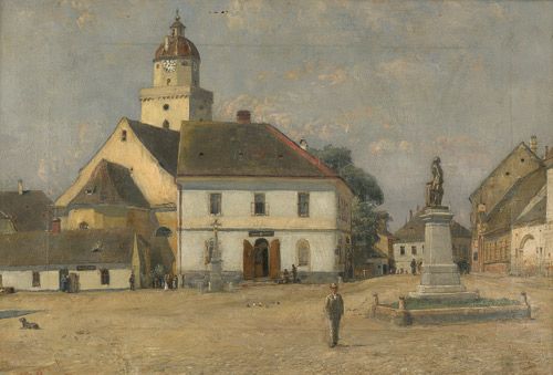 Der Hauptplatz in Pohorelice (Pohrlitz) in Südm...