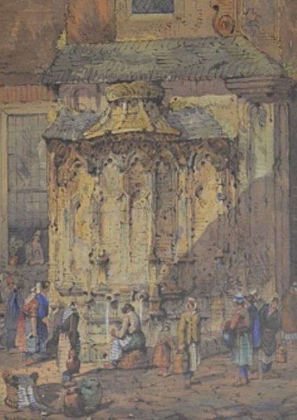 Figures at a fountain