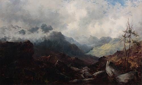 Cattle in a Highland landscape at sunrise