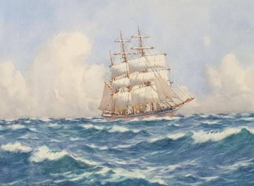 A three masted barque in open sea