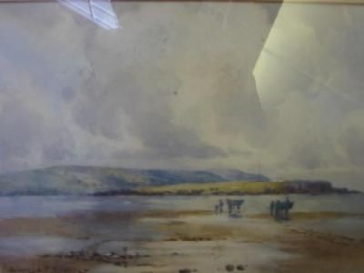 Coastal Scene with Fisherman, Hilbre Island in the Distance