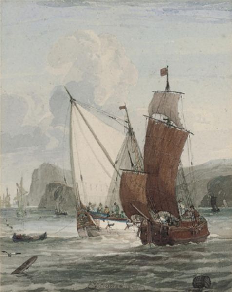 An armed yacht and small traders off the coast