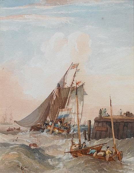 cA fifth rate with her topmasts down undergoing a refit with larger men-o' war anchored beyond