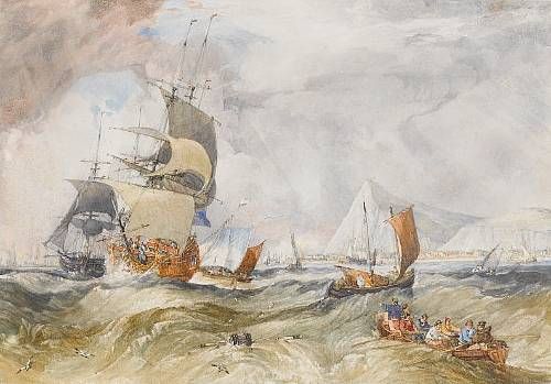 Crowded shipping lanes off Dover, with Shakespeare Cliff rising beyond